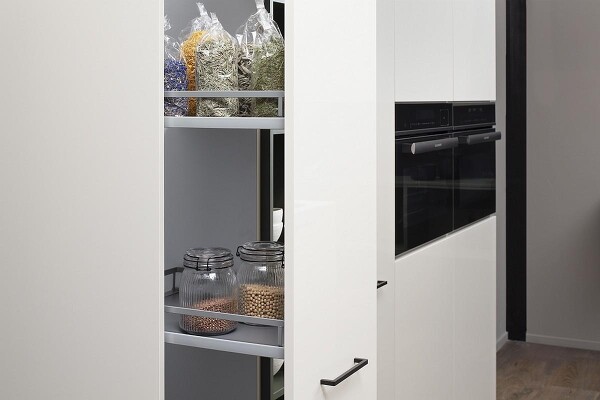 Die Organisation des Küchenstauraums hilft, ermüdungsfrei zu arbeiten. Das beinhaltet zum Beispiel Schubladen in den Unterschränken, die Ihnen das Bücken ersparen. Apothekerschränke bieten besonders einfachen Zugriff auf Vorräte.