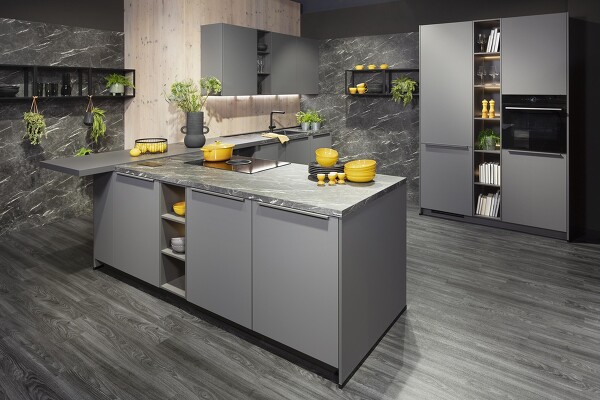Akzentwände im edlen Steinlook setzen beim Kochen ein Design-Statement